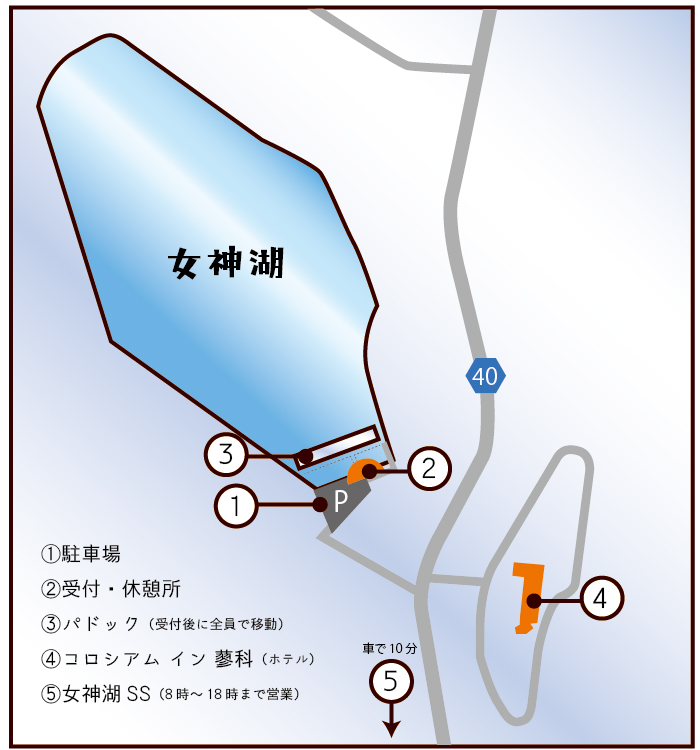 ・走行会前に湖上で使用する全車両の洗車が必要になります。集合時間厳守でお願いします