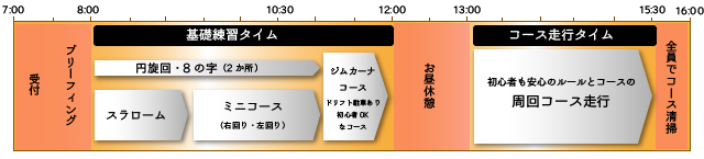 安全な広場で、スポーツドライビングの基礎練習から、応用練習まで幅広いメニューを展開します。