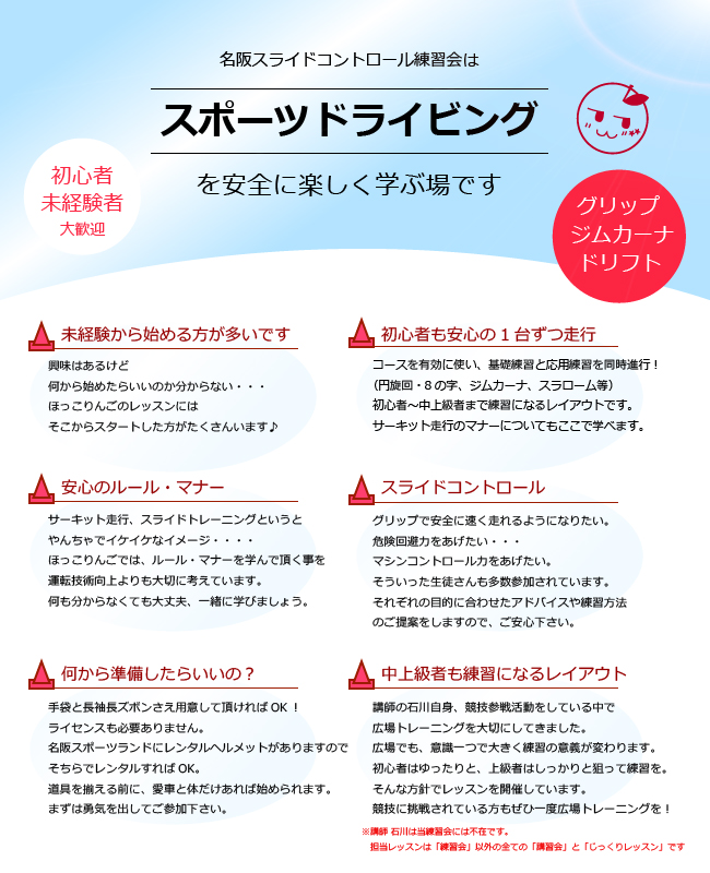 名阪スライドコントロール練習会 エントリー規定 ※予告なく変更する場合があります